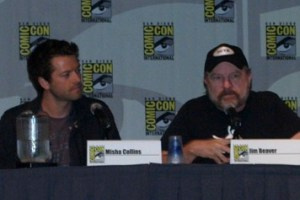 我想象不出有什么比一个好的《邪恶力量》见面会来结束今年漫画展更好的方式了。今年的见面会较往年相比有所不同。气氛看上去更平和安静了点。我将原因归咎于Jared和Jensen无法到场。创作人Eric Kripke说“‘兄弟俩’向大家问好”,然而场下的记者和观众依旧没有开心起来,于是他补充道“他们半裸向大家问好。”。不管怎样,女影迷们没有因为捉鬼帅哥的缺席而离场,Kripke和编剧Sera Gamble以及Ben Edlund带来了第一次在动漫展上出现的Misha Collins (饰演Castiel)和Jim Beaver (饰演Bobby).在去年的《凶鬼恶灵》的动漫见面会上,Kripke向大家展示了第四季的5分钟预告片,于是我猜这次在场的每个人都十指交叉祈祷他会将这变成一个惯例继续下去。不过我们没有看到开场的5分钟,而是中间的5分钟。Kripke解释道,因为第四季以一个大悬疑结束,于是他不想立刻放出第五季的开场。我不需要多于30秒的剪辑去证实第五季将要痛扁大魔头。在这五分钟内,我们知道Castiel被杀(死的彻彻底底干干净净),先知Chuck回归,Sam完全转向黑暗一边(眼睛变成纯黑色)但是很显然没有注意到,Zachariah (由Kurt Fuller饰演)回归。当预告片结束,我发誓我从整个房间听见了一声整齐“搞什么”。动漫会的气氛因芝加哥论坛报的评论家Maureen Ryan有所缓和,由于他的出色表现,我很想赞美他。那么天启开始了,这可是黑暗的东西,但是编剧Sera Gamble说她相信这将是非常乐观的一季。“上一季群都是把兄弟两拆散的段子,这一季会让他们和好如初。”Kripke说,的却,天启开始了,形势严峻万分,但依旧有好玩的时刻。Ryan问他们是否将这叫做“天启聚会”,Kripke开玩笑说因为预算限制,他们不得不将这场浩大的天启搞成“沃尔玛级的天启”好吧,温切斯特兄弟将面临天启,而他们的强势武器Castiel已经成挂的连渣子都不剩了。影迷们希望知道原因,还有Castiel是否会回归。(要知道,这里可以是超自然现象发生地哦~)。好像Edlund chimed有读心术一般,他插话道“好吧,公平点说,两个主角都死了不止一次”Kripke开玩笑说让Collins来动漫展就是充数的,他们会再雇一个由James van der Beek扮演的新天使,astiel当然会活过来,但astiel告诫我们,不要希望回来的是一摸一样的Castiel。Collins详细说明了一下,Castiel死而复生后会有些变化-他生为天使的一些法力消失了,他努力和这个变化抗争,但最终要面对事实。Kripke极为晦涩的透露了一点Castiel这个角色下一季的动向。他只说Castiel会有一项异常远大的任务,但是不能详细说明。Collins说Castiel会有“完全反叛的风格”,因为他完全被天界除名了,除此之外还不得不想办法成为一个普通人。我想这意味着我们将会在第五更多的看到Castiel出场。关于Mark Pellegrino饰演Lucifer,Kripke告诉在场的人,Pellegrino差点来演Castiel。Castiel这个角色就在Collins和Pellegrino之间竞争,不过Collins获胜。我想是有点戏剧性,之后我们请Pellegrino饰演Lucifer,也许是我有种怪诞的戏剧性。我们不会在每集都看到Pellegrino,因为每周都看见他的伙计惨败无疑有损Lucifer的形象。我们会在第五季开始就看见他出场。Jordan和编剧很高兴分享一些其他的消息,期盼第五季的到来。我们发现第三集"Dean带着Cas到了女支院。”(他的原话,不是我说的)我们也还要准备看到一些新面孔。已经证实,第三集中,Adrienne Palicki将回归饰演Sam死去的女友Jessica,不过剧组的人员口风很紧,不告诉我们是在什么样的情况下回来的。Kripke只是说她会回来,当我们追问详细情节,他补充道“这次是私人的?”这句话很诡异,你想怎么理解都成。更多熟悉的面孔有Ellen和Jo Harville。Meg Masters准备回来,但不幸的是,编剧没法想出一个让她借助相同肉身回归的法子。要知道,这个女人已经埋在地下烂的不成样子了。这就意味着,Nicki Aycox不会继续她的角色了。这一季看上去会有非常盛大天启。这就又把我们带回是否有第六季的问题。众所周知,Kripke一直坚持他的五季完结计划,但真会如此吗?或许不会。Kripke没有说关于第六季的计划,但他表示这个会考虑。“目前我们只制作了6集,因此这一季我们还有16集,”Kripke解释道“船到桥头自然直”Kripke向我们保证,他不会用天启的故事情节一直拖下去,也不会为了第六季的出世而拖沓剧情。他向我们保证,我们的问题将会得到解答,而故事的这一章会圆满结束。整个见面会被传统的方式打断而结束。在大家都来热情的时候离开总是好的,可以让人回味无穷。没了Jared和Jensen,这个剧组的见面会绝对会变样。不过当我说幸好有Misha和Jim出席的时候,我想我是说出了大家的心声。如果有第六季,我会期待明年的《凶鬼恶灵》动漫展剧组见面会,但是现在,可一定要看9月10号在CW电视台播放的《凶鬼恶灵》第五季首播。