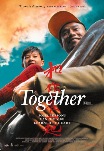 附注:电影资料。 ■片名:《和你在一起》 ■译名:《Together》 ■导演:陈凯歌 ■编剧:陈凯歌、薛晓路 ■主演:刘佩琦、陈红、王志文、唐韵、陈凯歌 ■类型:剧情 ■片长:117分钟 ■产地:中国、韩国 ■语言:汉语普通话 ■色彩:彩色 ■分级:PG ■幅面:35毫米遮幅宽银幕系统 ■混音:杜比数码环绕声 ■摄制格式:35 mm ■洗印格式:35 mm ■制作公司:21世纪盛凯影视文化交流有限公司 ■发行公司:A-Film Distribution ■首映日期:2002年9月10日(加拿大)