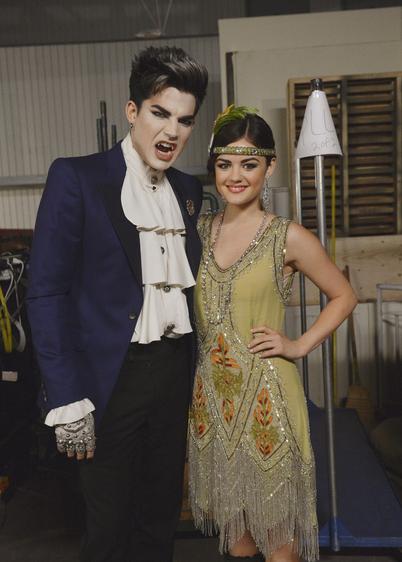 30岁的歌手亚当与该剧女星露西·海尔(Lucy Hale)拍摄了几场对手戏。在今年的万圣节,海尔装扮成了20年代的flapper风格女郎。