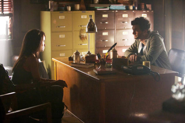 《吸血鬼日记》第四季第五集《杀手》:邦妮和尚恩(Shane)教授交谈。