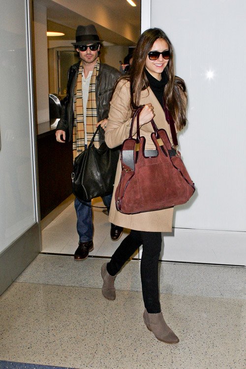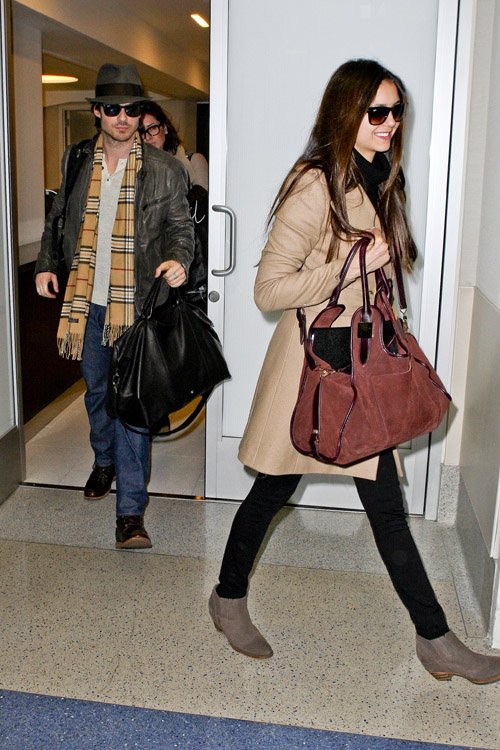 节日刚过,演员们就恢复忙碌行程。12月26日,《吸血鬼日记》(Vampire Diaries)两主演伊恩·萨默海尔德(Ian Somerhalder)与妮娜·杜波夫( Nina Dobrev)现身洛杉矶机场。