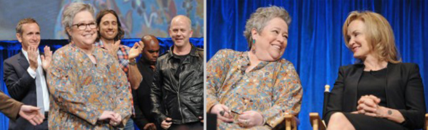 上个月有爆料称,最近因癌症刚做完双侧乳房切除术的奥斯卡影后凯茜·贝茨将加盟《美恐》第三季。在这次座谈会中,这位最后定下的常规演员作为神秘嘉宾出现,为会上活跃的讨论划了一个圆满的句点。