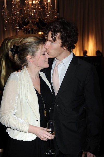 本尼迪克特2012年时低调表明二人正在约会,如今聚会上他身着漂亮的黑色长裤和白色衬衫,看起来很乐意炫耀自己媳妇儿。