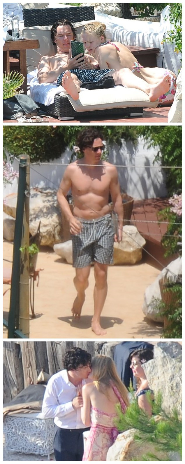 本尼迪克特坐拥身着三点式比基尼的俄罗斯模特卡蒂亚·伊莉扎洛娃(Katia Elizarova)在伊比沙岛(Ibiza)晒太阳。当他们在泳池边休息时,“夏洛克”深情地撞了撞26岁卡蒂亚的胳膊。