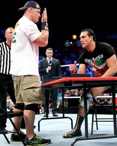 塞纳:既然你桌子都摆好了,还叫来了裁判,那我就恭敬不如从命了!(全场YES!)不过有一点你要注意,周一晚你试图粉碎我的左臂,恭喜你成功了!不过遗憾的是,我还有右臂,因此等会,我要把你的右臂给掰断!