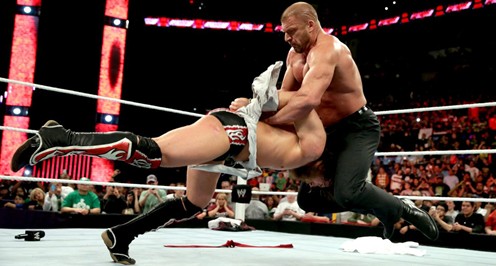 HHH被迫又做下了决定,无论他和丹尼尔谁赢了,WWE冠军都会是三重威胁赛。也就是说,他和丹尼尔的比赛胜者,将会是世界重量级冠军赛的第三位人选。然后愤怒的HHH又再转身离去,这下子巴蒂斯塔也顾着怒看着HHH,背后兰迪背后飞起一记RKO,命中巴蒂斯塔。