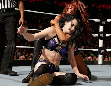 RVD和塞萨罗这场比赛今晚当中的胜者将会和韦德巴雷特争夺洲际冠军的第一竞争者,这关乎到最后冠军的争夺,相信两边都会使出全力对待。 比赛开始两边都秀技术,两人互相走位,但就是没有攻击成功。塞萨罗首先扛起RVD一个膝盖顶向他的背部。塞萨罗回来吃了RVD一脚,但是回来一个后仰摔给回RVD。塞萨罗躲开了RVD的飞冲,接着把他狠狠地踹向边角。回来塞萨罗抱起RVD一个背折摔。塞萨罗继续消耗RVD,从后锁住他的颈部。RVD使劲全力成功挣脱,接着RVD站上边角一个飞踢给了塞萨罗。RVD再次站上边角,但这次塞萨罗立刻冲上去一个Uppercut给了他。回来RVD成功一个飞扑砸向塞萨罗。两人接着互相厮打,塞萨罗使出一记Tiger Powerbomb!(两人配合不当,差点RVD就脖子就出问题了)。然后塞萨罗成功抱起RVD的双腿,这时斯瓦格出来了。塞萨罗迎战,RVD场外飞扑反被塞萨罗又一记Uppercut!趁着裁判不注意,斯瓦格把塞萨罗给撞在铁柱子上。裁判数秒10下,塞萨罗没能回到擂台上,比赛结束。 Winner:Rob Van Dam 后台,RVD接受采访。保罗海曼和塞萨罗直接过来打断采访,他们认为今晚的失利归结于斯瓦格和泽布的干扰,RVD赢得不光彩。而RVD认为很正常,并奉劝塞萨罗为了前途,请远离保罗海曼。 [b]无头衔赛 Aksanavs. Paige[/b]