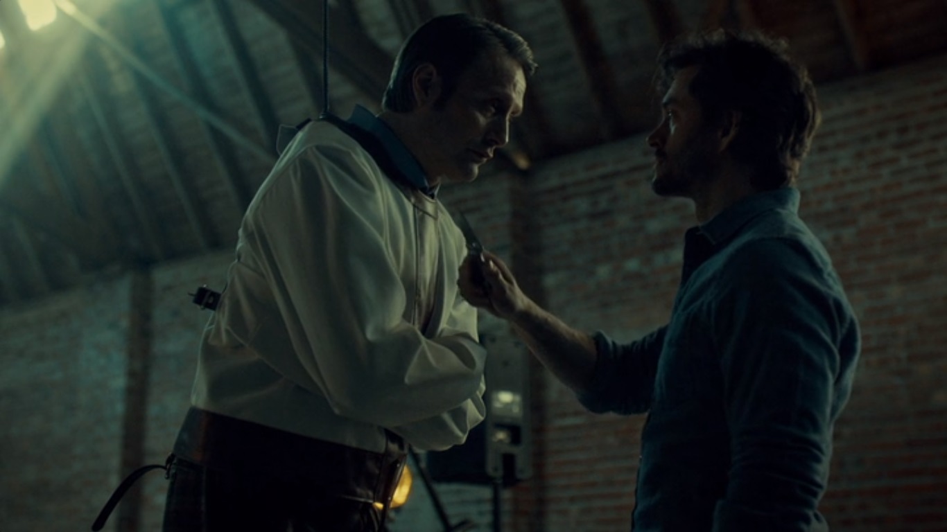 恐怕观众们在看本季的倒数第二集时一直抱着这个疑问。虽然第一次提到这个问题是在汉尼拔·莱克特(Hannibal Lecter)【麦德斯·米科尔森(Mads Mikkelsen)饰】与杰克·克劳福(Jack Crawford)【劳伦斯·菲斯伯恩(Laurence Fishburne)饰】二人充满隐喻色彩的晚餐对话里,但是到了这一集的结尾,当威尔·格兰姆(Will Graham)【休·丹西(Hugh Dancy)饰】又一次在两人中间摇摆不定时,这个问题又有了新的含义。
