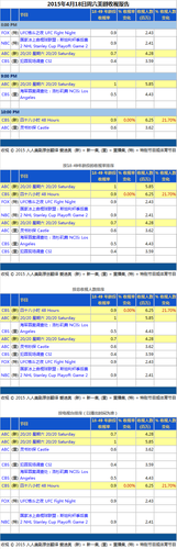 2015年4月18日周六美剧收视报告