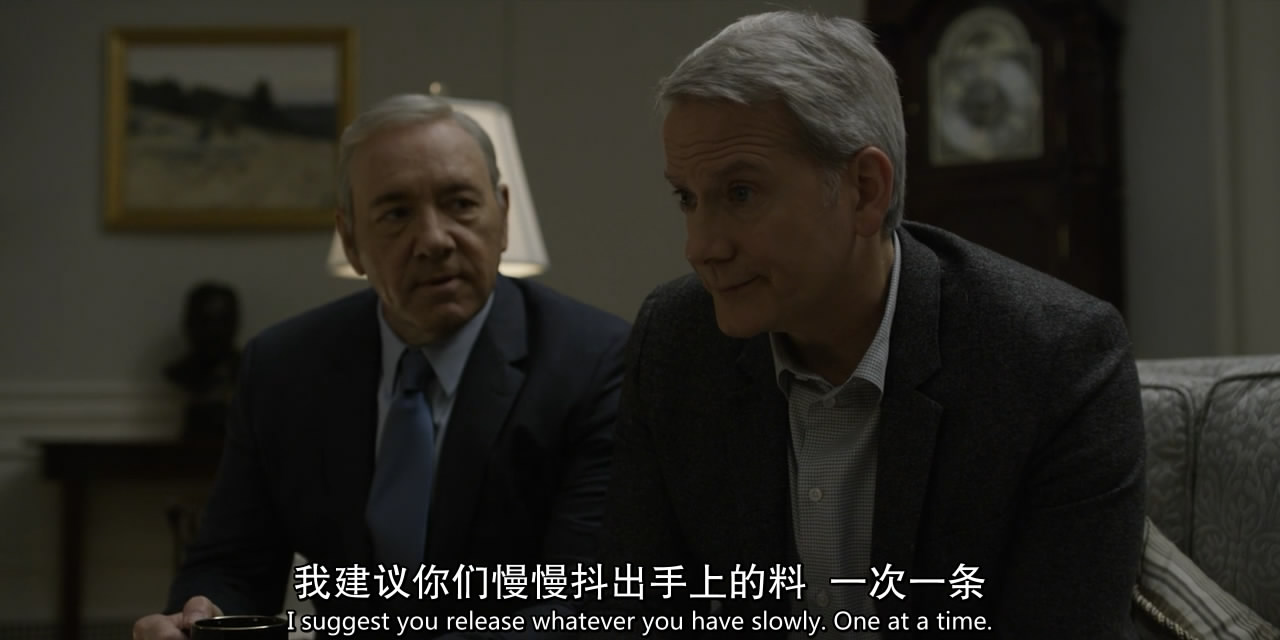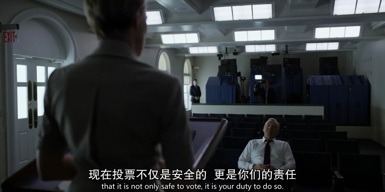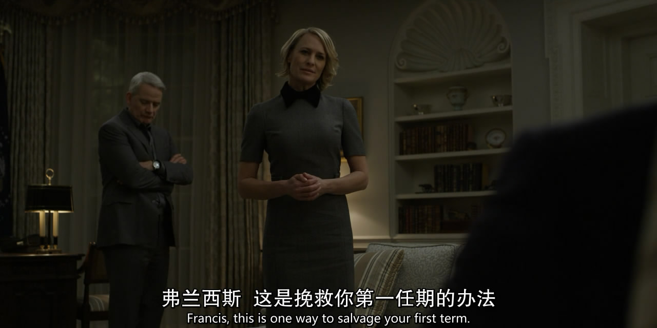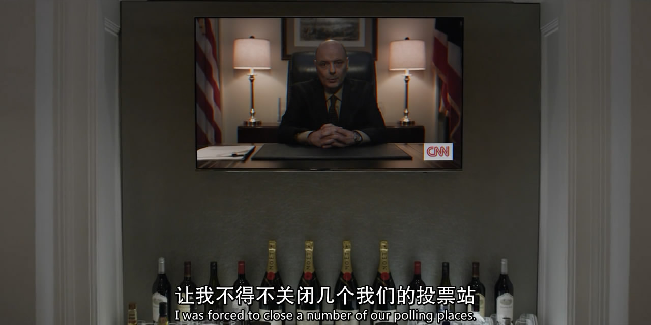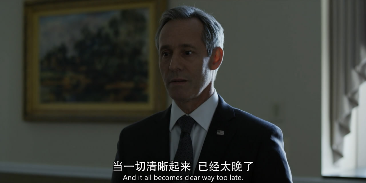 第五季《纸牌屋》是迄今为止一次性最耗费我精力的剧评对象了,周六花了一整天回顾了13集,粗选出了330多张图和近7000字的剧情大纲(再慢慢删)。 如我先前所说,S5算不上好,但放在芸芸美剧里依然是部还可以的作品,值得为其花费这么些时间——按照计划,我分成了四个主题,分别为“剧情篇”、“下木篇”、“权力篇”、“牺牲篇”。 写完后我可以自豪地说一句:尽管不是《纸牌屋》S5观点最成熟、优质的评论,但一定会是内容最细致、全面的剧评(就当勤能补拙吧)。 剧情篇—— 本篇主要是捋一遍这季的主要剧情,许多细节放到后面三篇再讲。 第五季的故事紧接上季结尾,安德伍德夫妇开始在全国散播恐惧(《纸牌屋》S5回顾+预热:以鲜血与骸骨,为我加冕),起于大选前三周弗兰克强推全国戒严,终于克莱尔成为总统准备搞事,期间大致可分为三个阶段,首先是下木夫妇不择手段把大选作废(1-4集),其次是正式换届前弗兰克重掌话语权(5-8集),最后是当选之后阴谋争权的大混战(9-13集)。 1、拖延期 下木夫妇说到做到,两人分头行动,大肆在国内散播恐怖。 克莱尔不厌其烦地上镜演讲,呼吁国民睁大眼睛,“互相监督以确保所有人的安全”,名为“保障安全”,实为营造人人自危的氛围。 弗兰克则戴了国会胸针硬性来参加众议院会议,并且不顾反对,上台大放厥词: “我不在乎,而且我也不在乎你的调查委员会,那不是我今天关心的东西,我要去出席一个美国爱国者的葬礼,他在美国境内被人砍头,众议院却在今天辩论我?……我不会退让的,因为我等不了……我要求所有众议院议员表明立场,我要求国会正式对哈里发国宣战,在本土,也在海外。” 国会被搅得一片混乱,不少共和党议员直接拂袖而去……一定程度上,弗兰克成功了,他用过激的言行转移了调查方向,现在,更多注意力放在了总统强行要求开战是否合理上,而暂时忽略了《先驱报》的报道。 出席完葬礼后,两人都感觉火候依然不足,这时,对手威尔·康威妻子汉娜力挺凶手母亲的视频,让克莱尔找到了灵感:“我们必须扩大恐惧感,那个母亲能帮我们做到。” 之后,克莱尔见到了马斯特森太太,轻而易举攻破她的心理防线,让她出门后呼吁约书亚自首,看似合情合理,其实只为平静地撕裂安宁。 与此同时,克莱尔又去一家发生爆炸的商店视察,把普通的安全事故暗示为恐怖袭击,被清醒且愤怒的民众骂作“战争婊子”,还泼了油漆。 事实上,此时弗兰克早已关押了剩下的凶手约书亚:“你以为我没抓住他,我会任他在外面流窜吗?” 为了营造恐惧,弗兰克刻意瞒报了抓捕进度,在榨干约书亚为数不多的价值,并羞辱地体无完肤后,下令直接处死。 接着,弗兰克对外公布扎克瑞和约书亚两名凶犯均已枭首的消息—— 同时,他还把两人说得跟海外的ICO和国内ICO网络都有密切关系,反正死无对证,自然要发挥最大的“作用”。 在万圣节,总统召开州长会议,想告诉大家全面警备的重要性——弗兰克想下达行政命令,扩充各州的国民警卫队,以确保选举日公共场合的安全性,督促这些州长合并投票站,建立“投票中心”,这样民众会觉得出门投票是“安全”的…… 实际上,弗兰克的目标是五个关键州的州长,比如俄亥俄州的奥姆斯泰德,以及和宾州的马修斯。 道格紧跟弗兰克的步伐,留下了五个关键州的机要秘书,希望他们能在大选前建立合作——在共和党票仓实行戒严。尽管名义上这事关国家安全,但谁都看得出来,这只会适得其反。 另一方面,威尔的副总统人选布洛哈特将军,得知弗兰克想拿国民警卫队做文章,在录完节目后,自以为没人会听,说了一番日后会把自己绊死的言论: “我对天发誓,要是安德伍德往边境派兵,我第一个站出来让军人抗命。” 宾州的马修斯州长和弗兰克达成“协议”后,却在听证会上近乎凌乱,正当他快要被攻破防线时,整个华盛顿地区发生了大规模的信息干扰——正是弗兰克指使麦卡伦搞的破坏。 或许只是一场恶作剧,但弗兰克在随后的广播讲话中,立刻把这说成了很可能与ICO有联系的网络攻击。 制造威胁气氛的效果立竿见影,比如奥姆斯泰德州长的幕僚长塔尼亚都开始觉得增加国民警卫队是对的。 弗兰克也借机指挥了国民警卫队并且施行宵禁,把威尔逼得大发雷霆。 大选前夕,本该早就表态支持弗兰克的马修斯州长却一直虚以委蛇,道格甚至上门“威逼”,马修斯终于说出真心话:自己不想站在败者那一边。 作为弗兰克的竞争对手,深受镜头喜爱的威尔决定发挥长处,搞“24小时网络直播回答提问”的噱头,却不断被人问到和说到他在战场上的英勇表现,这让威尔如坐针毡(可能是PTSD,也可能英雄事迹有所捏造),而这当中也有弗兰克指使的致电。 形势不容乐观,弗兰克在克莱尔那里得到短暂慰藉后,打电话给威尔,又补了对方一刀:“无论你在海外有过什么遭遇,你都不必感到内疚或惭愧。” 当然,那些都是花架子,真正的结果得由投票结果说了算。 大选开始,但下木夫妇节节败退,甚至连弗兰克老家南卡州的选票都丢了……这让两人的惯常节目也变得索然无味…… 我们能够接受失败吗?不能。“这是我们的地盘,我们不会走的。” 做了短暂调整和计划后,下木夫妇重整旗鼓,先是出来鼓励竞选团队成员,再开始耍各种下三滥的“阴招”。 比如旧事重提——前两天凯茜曾提出在选举日逮捕疑似恐怖分子卡拉比,被弗兰
