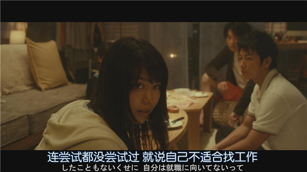 理香其实一直用尽心思想要得到大公司的offer,在求职场上咄咄逼人,完全没有平时的友善。拓人表面无害,实际上他一直默默观察所有人,也瞧不起身边的人。自命不凡的隆良其实背地里也在积极找工作。瑞月和光太郎还算正常,也是我觉得本片最“好”的两个人设。