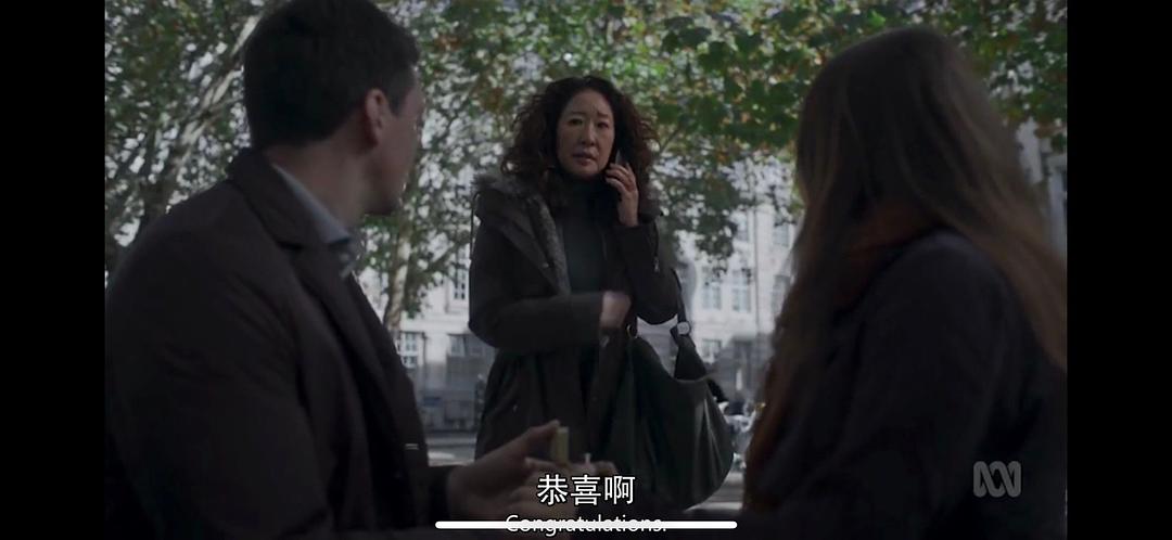 Sandra Oh的表演细腻而充满张力,第一集开头,EVE逃出巴黎,回到伦敦,回归Normal的一段表演堪称教科书般精湛。完美诠释了应激性创伤后,个体的心理变化。最开始慌不择路地逃出公寓(离开第一现场);在接到Caroline的电话后,极力保持镇定,却在挂断后忍不住喃喃出真相:我好像杀了她(完全没有注意到面前是一对正在浪漫求婚的爱侣);