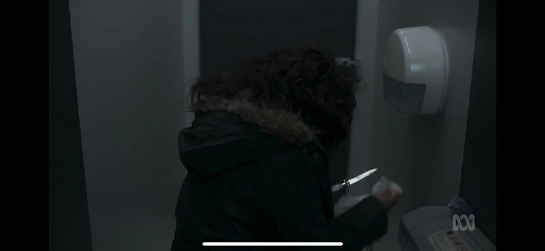 S1最后一集中,EVE来到了巴黎,在小变态Villanelle的公寓,两人终于再次见面。肩并肩躺在床上,互叙心事。难得的暧昧温情弥漫在两人之间。画面一转,EVE手起刀落,将一把匕首深深插进了小变态的身体里。