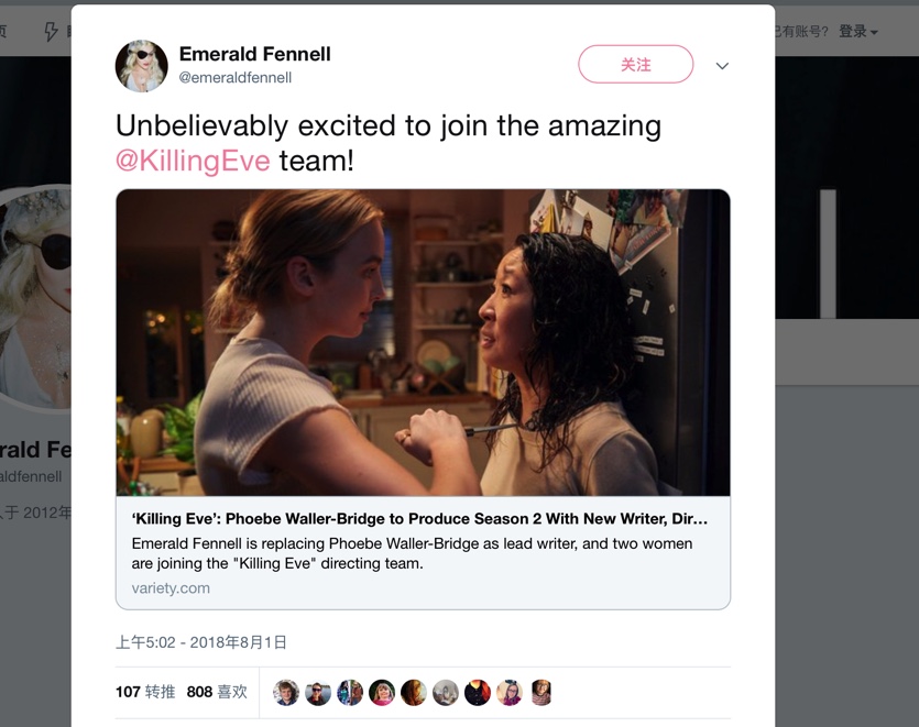 同样具有演员和剧作者双重身份,Phoebe和Emerald两人在私下里也是至交。在采访中Sandra Oh就有提到,两任编剧对于故事发展及情节设置的想法是相似的。